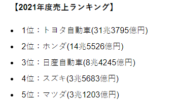 日本は貿易統計上、2021年の車は11兆円輸出しているそうだ。